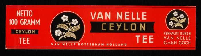 Rood, papieren label VAN NELLE CEYLON THEE, 100 gram...