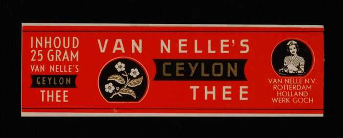 Rood, papieren label VAN NELLE'S CEYLON THEE, 25 gra...