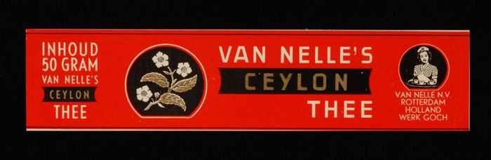 Rood, papieren label VAN NELLE'S CEYLON THEE, 50 gra...