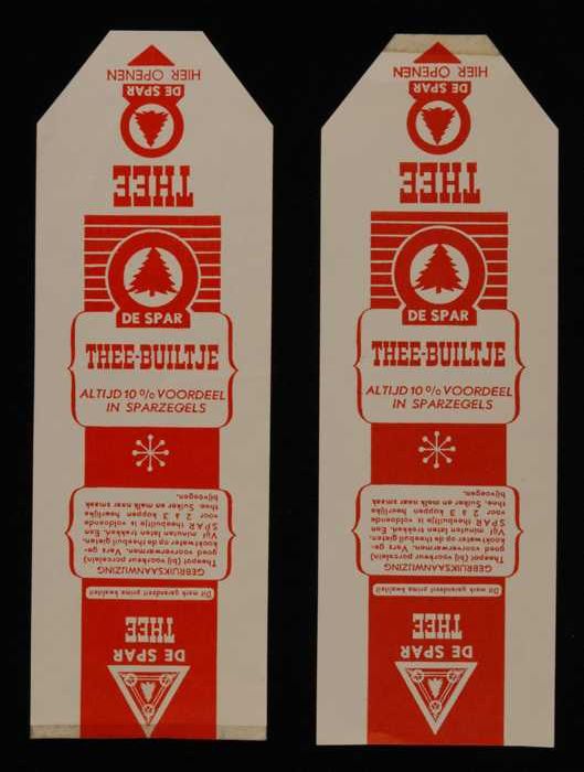 Rood, kartonnen label DE SPAR THEE, 1 theezakje