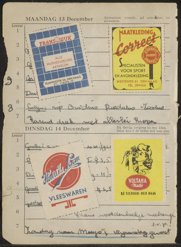 Bladzijde uit schoolagenda met sluitzegels