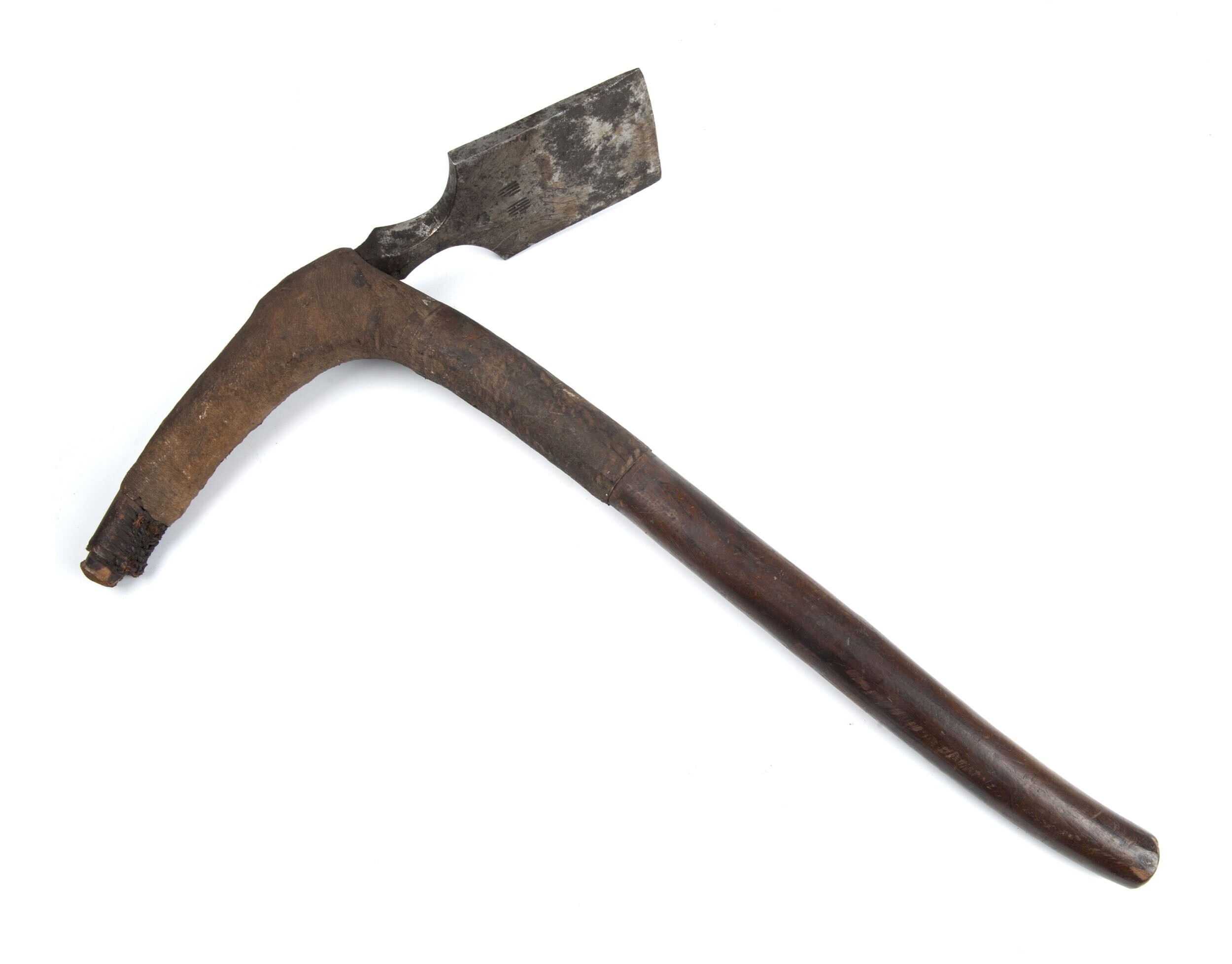 Dissel van ijzer en hout, met een beschermhoes van b...