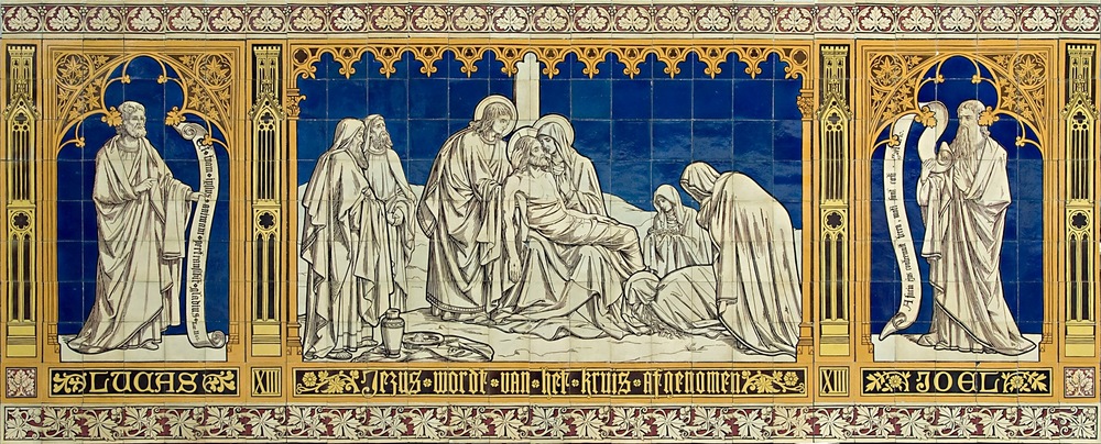 Tegeltableau, voorstellende de 13e statie van een kr...