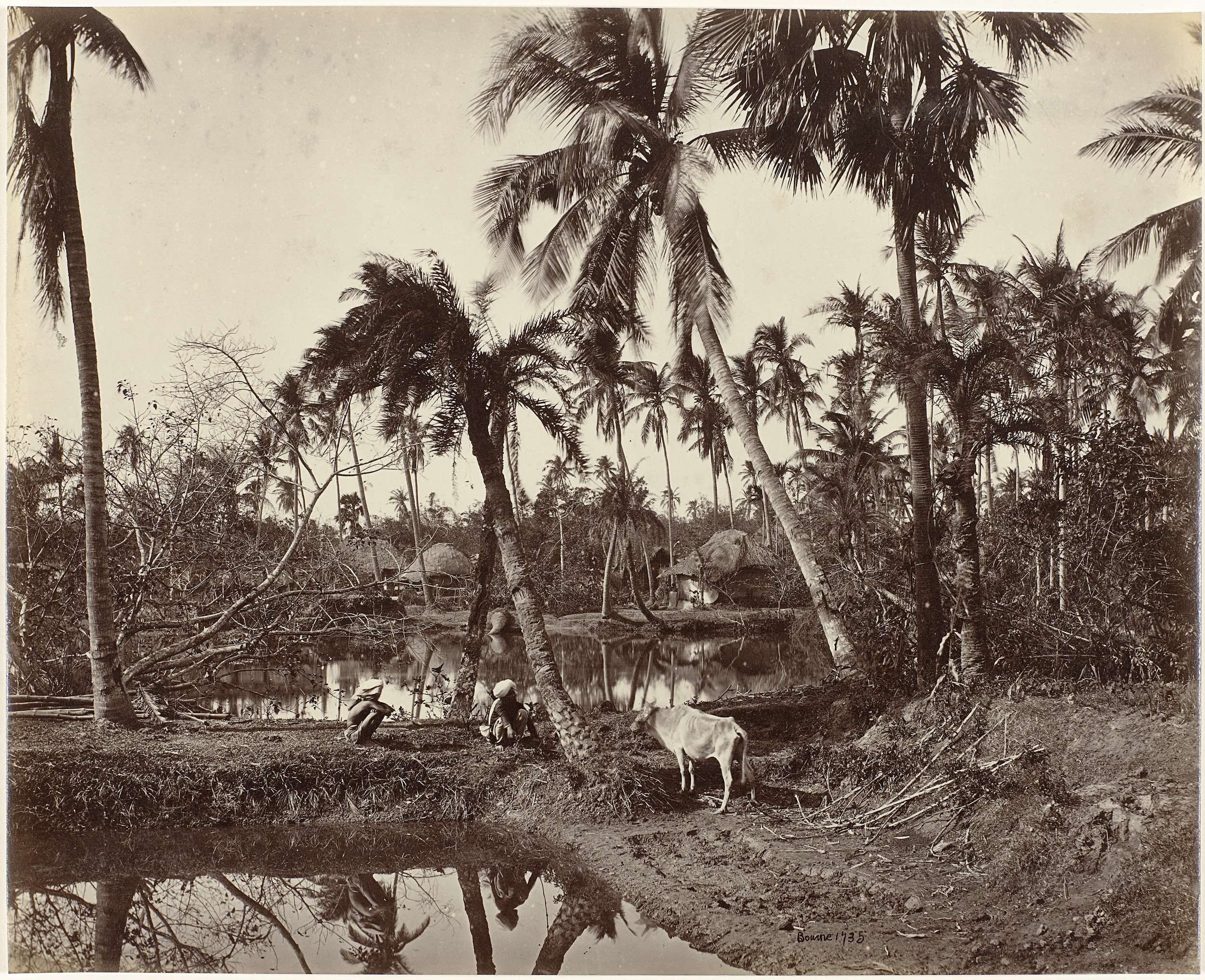 View of a village on a river in Bengal, India
