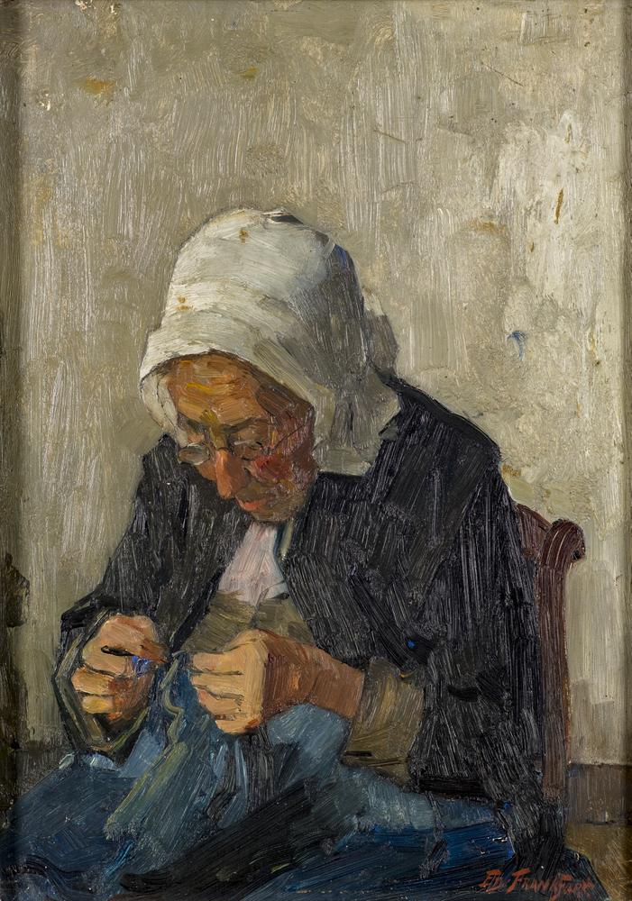 studie naaiende oude vrouw