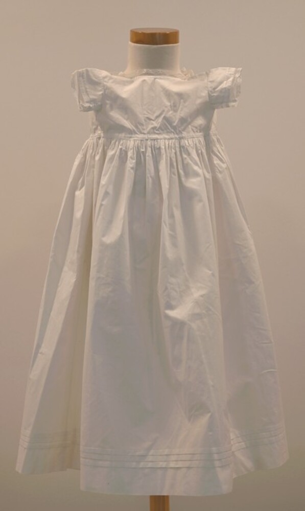 Dooponderjurk van textiel wit en opgeborgen in een d...
