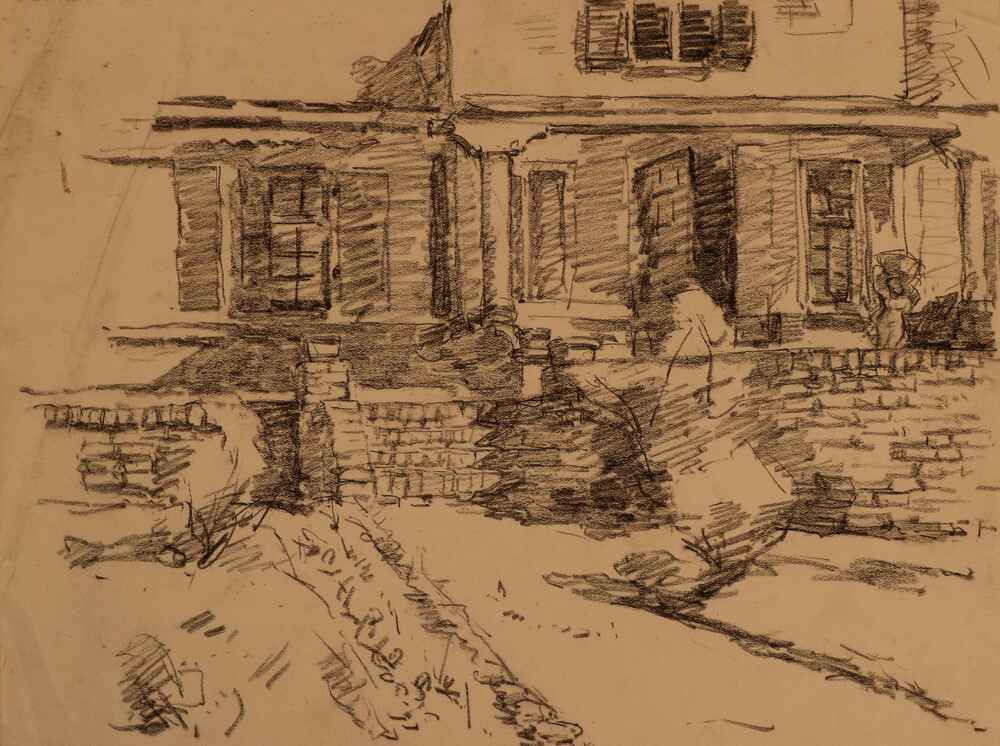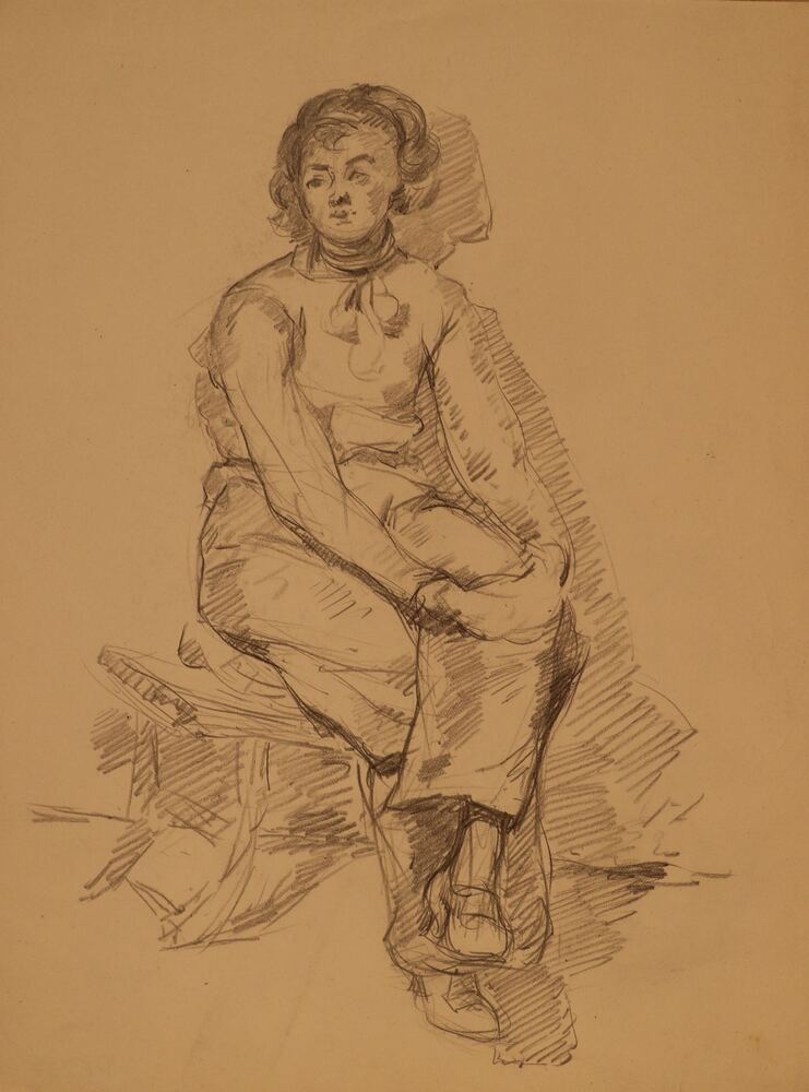 Houtskooltekening, voorstellende een Hierdense boeri...