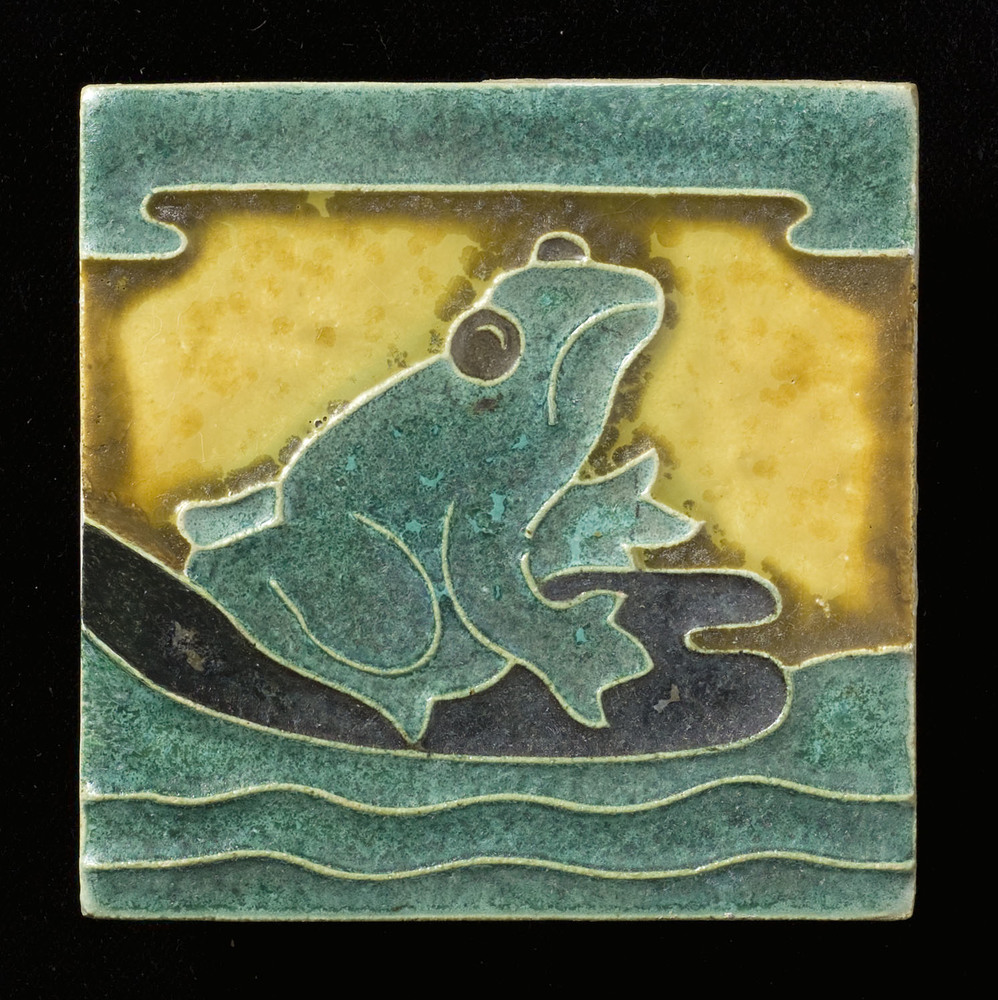 Tegel in cloisonné-techniek, met voorstelling: kikke...