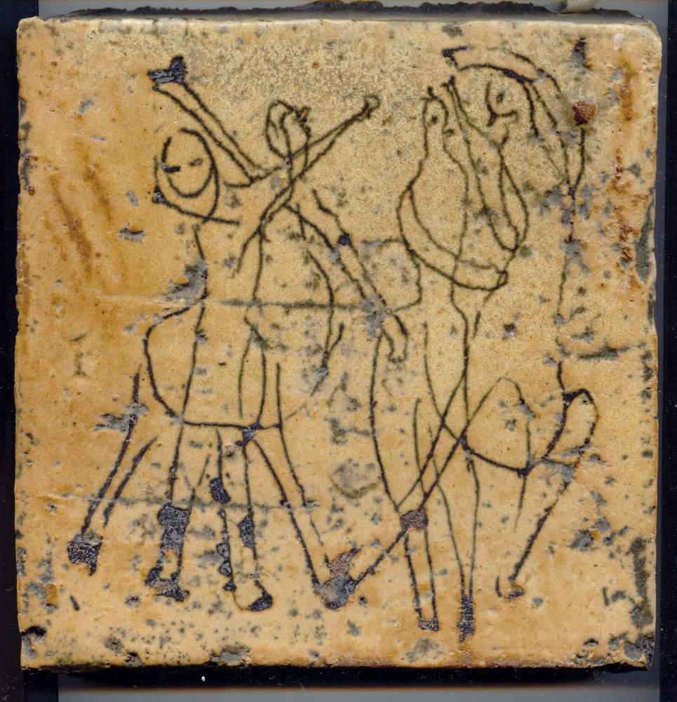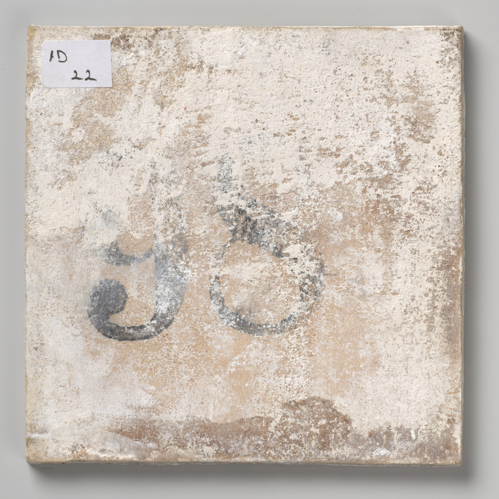 tegel van keramiek met tinglazuur, voorstellende: la...