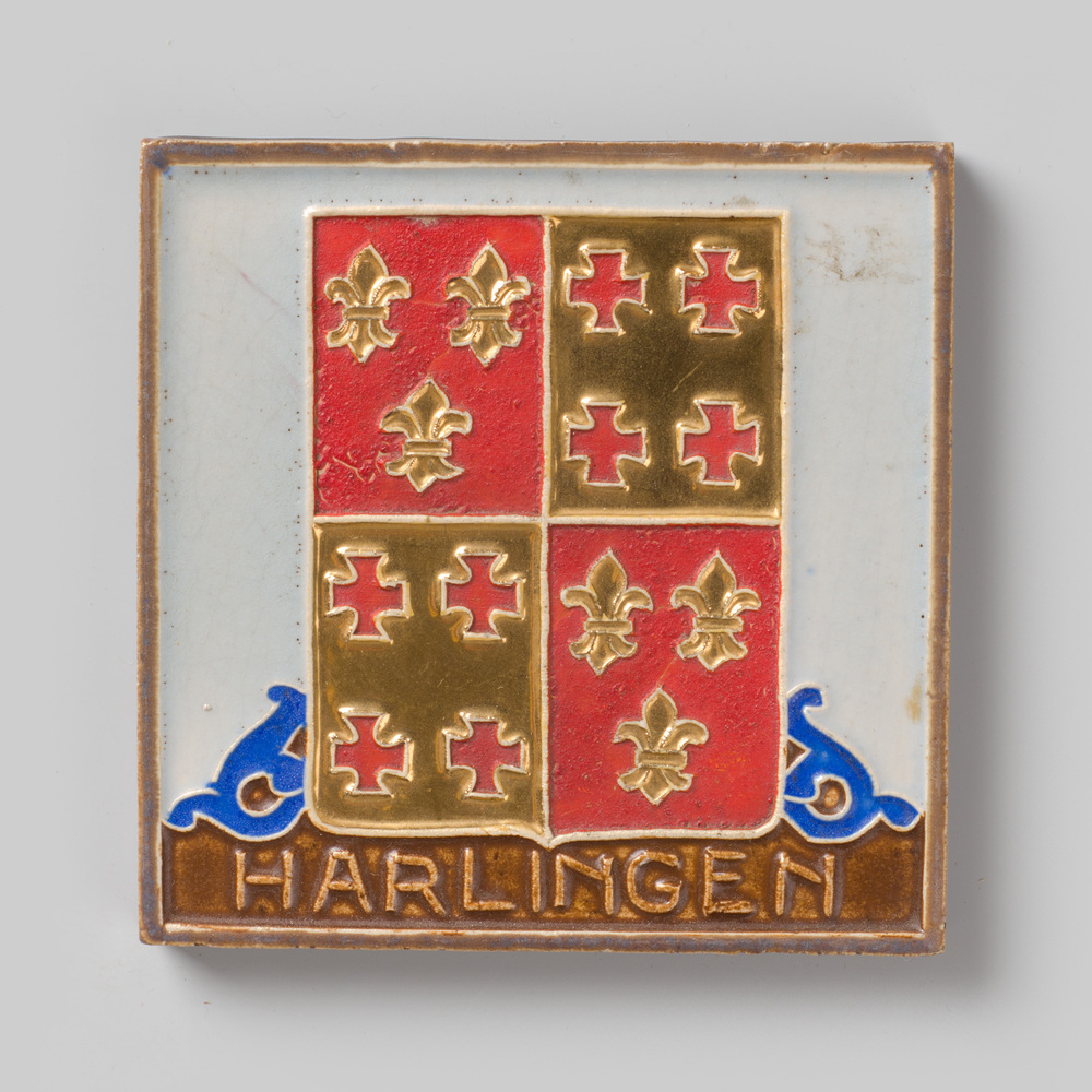 Tegel in cloisonné-techniek, met voorstelling: lands...