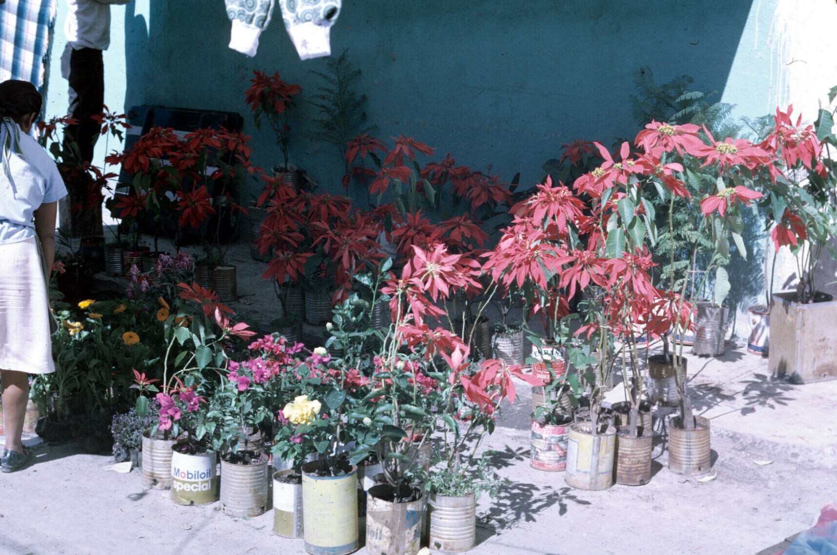 bloeiende planten, o.a. poinsettia's, op markt