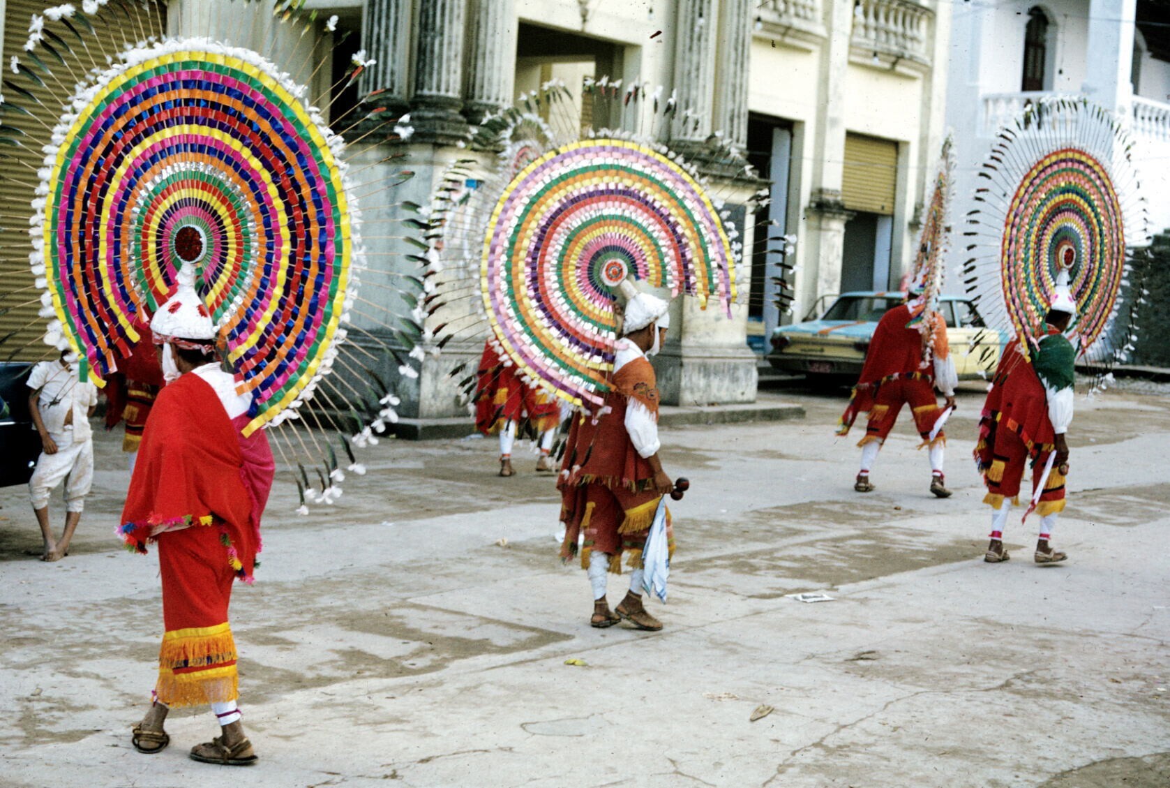 'Negritos' en toeschouwers, kijkend naar intocht vol...
