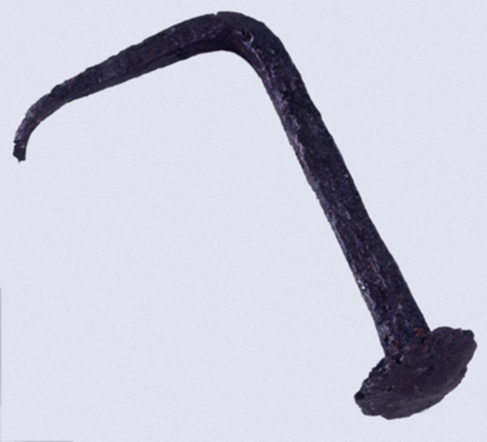 Drie spijkers met platte kop, uit Schoonbroeck, midd...