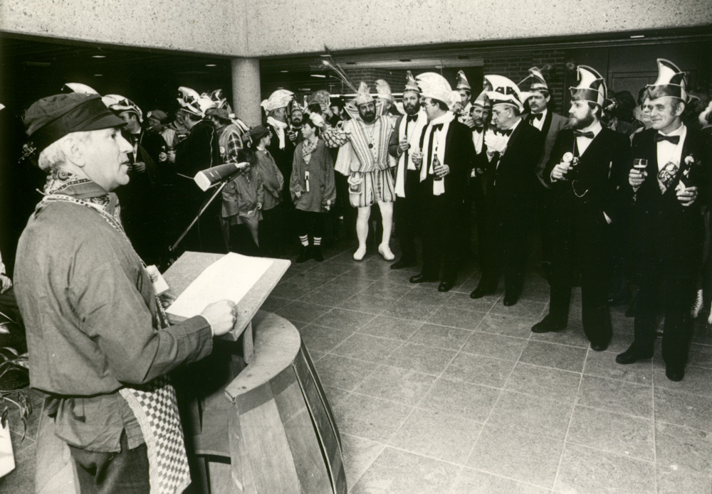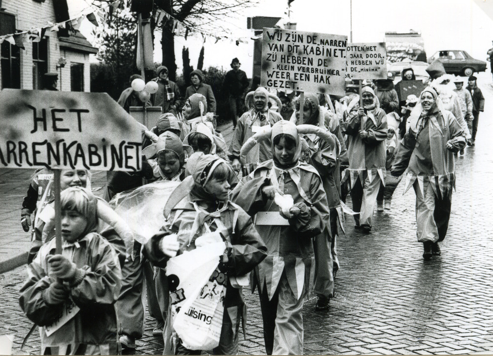 Zwart-wit foto van de carnavalsoptocht in Herwen 8 f...