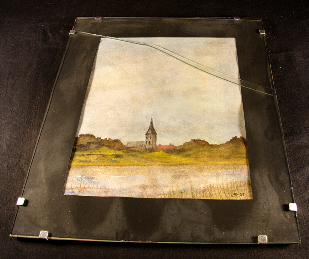 Schilderij aquarel op papier zicht op het dorp Herwe...