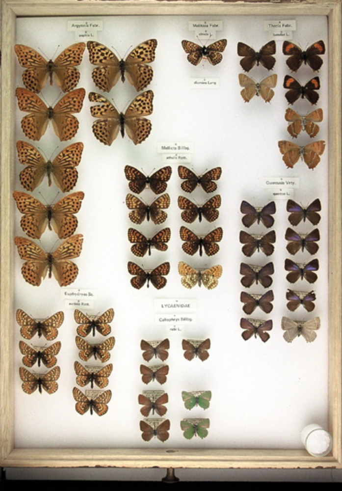 Vlinderlade 010 van 106 van hout en glas met daarin ...