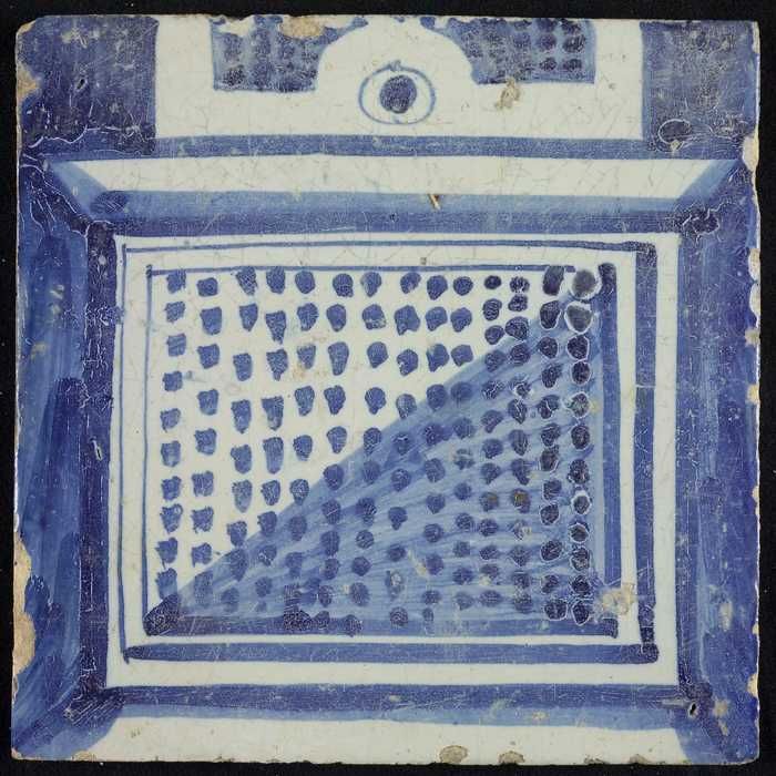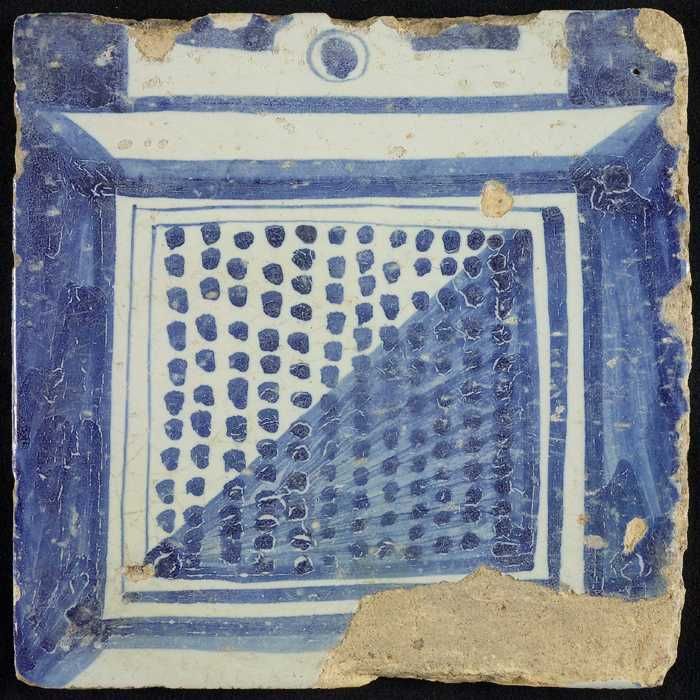 Tegel van schoorsteenpilaster, blauw op wit, onderzi...