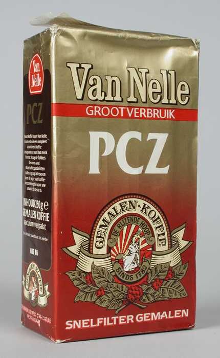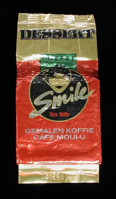 Goudkleurige, plastic zak VAN NELLE KOFFIE, grootver...