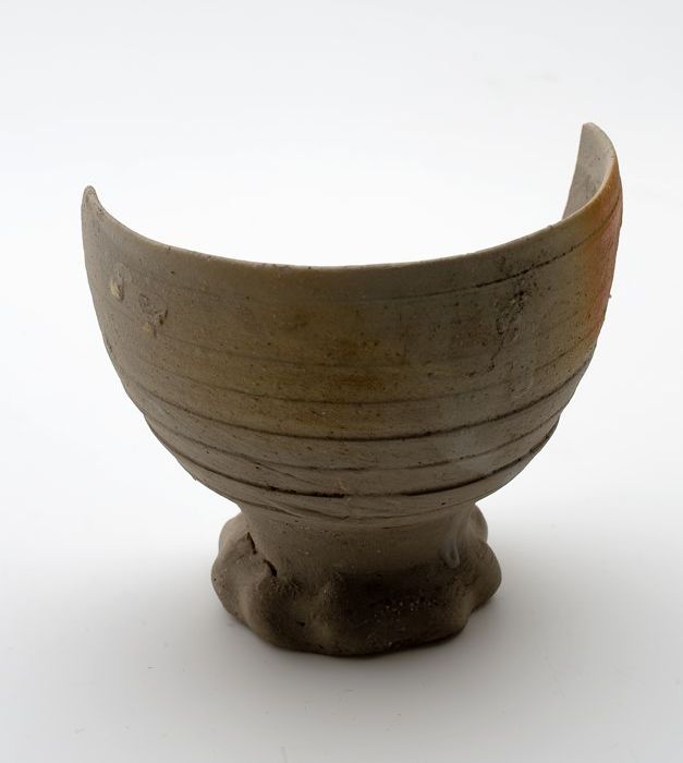 Fragment steengoed beker op geknepen voet, halfrond ...