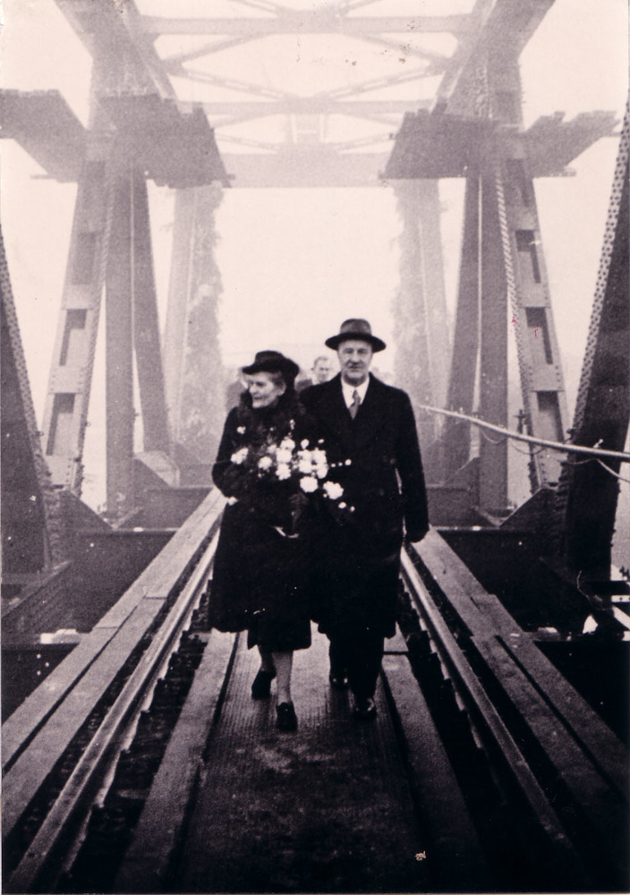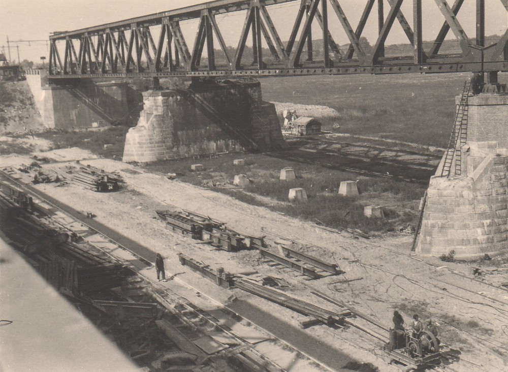 Herstel spoorbrug in 1947.