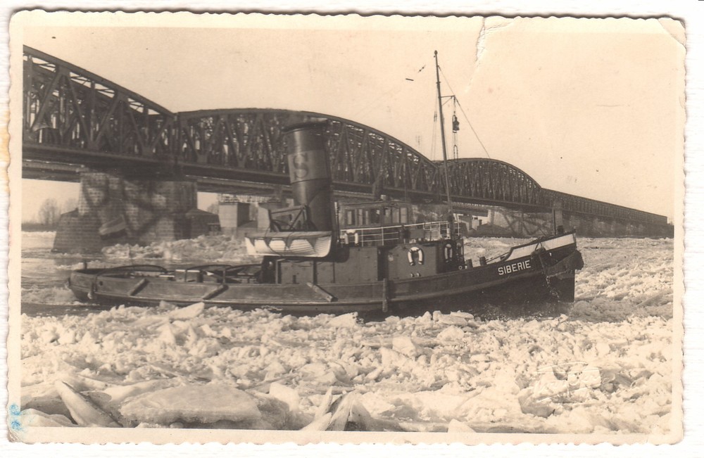 Ijsbreker Siberie in volle gang op de waal.