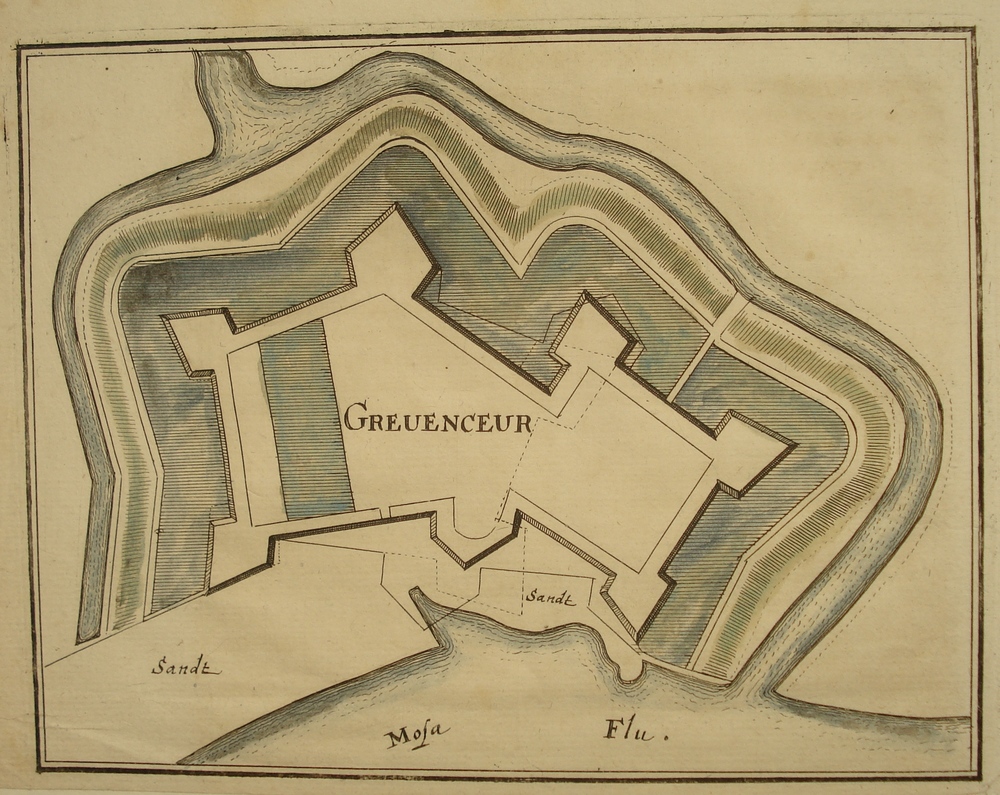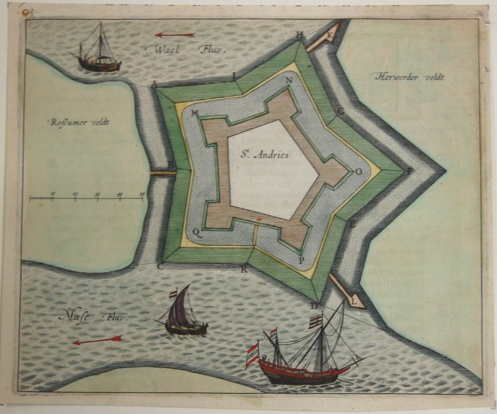 plattegrond van fort St. Andries en de rivieren Maas...