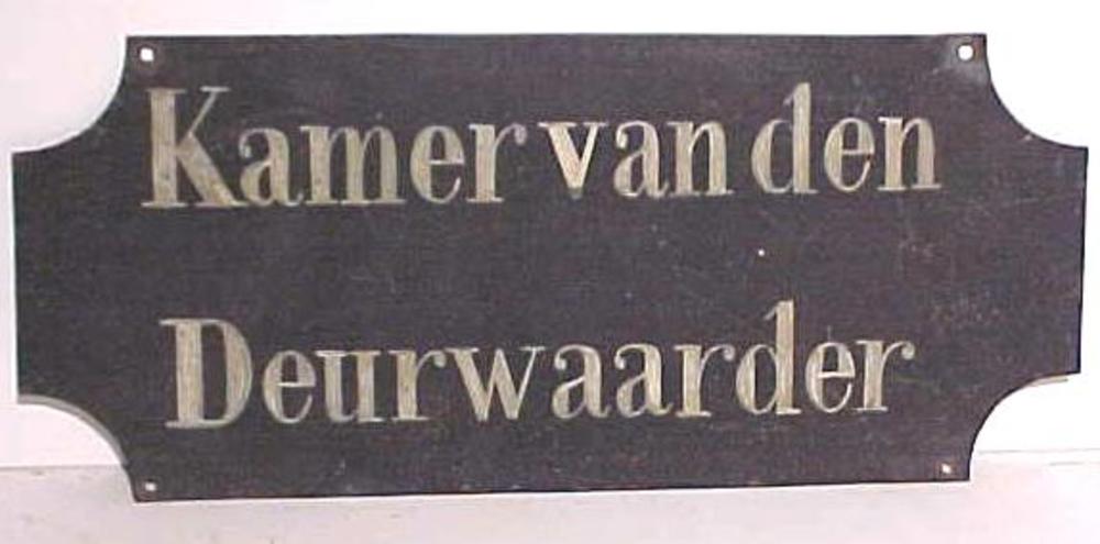 deurwaardersbord. Rechthoekig van zink met tekst. Pe...