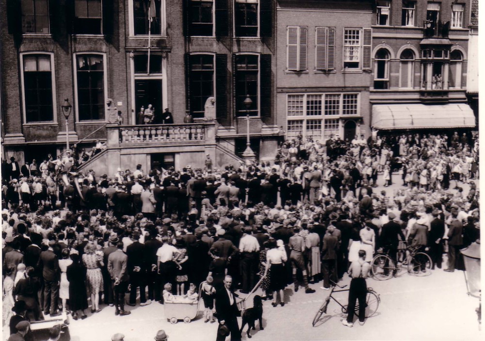 Toespraak vanaf het bordes van het stadshuis.