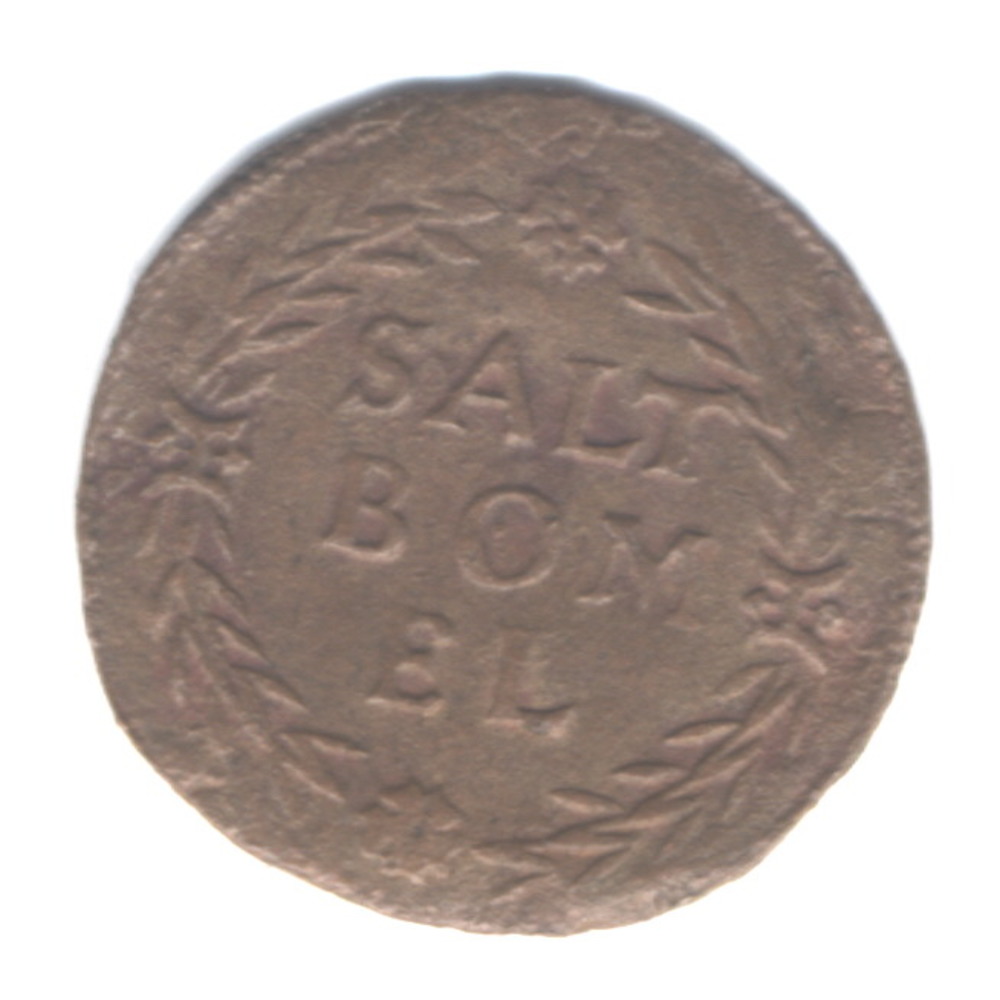 Bommelse duit. Noodmunt van brons met aan voorzijde ...