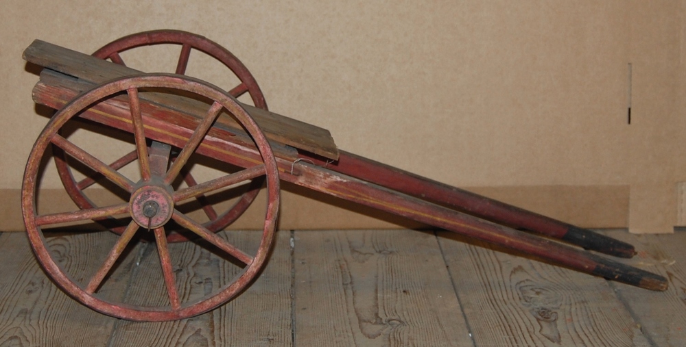 speelgoedwagen. Twee lange duwarmen met vlak plateau...