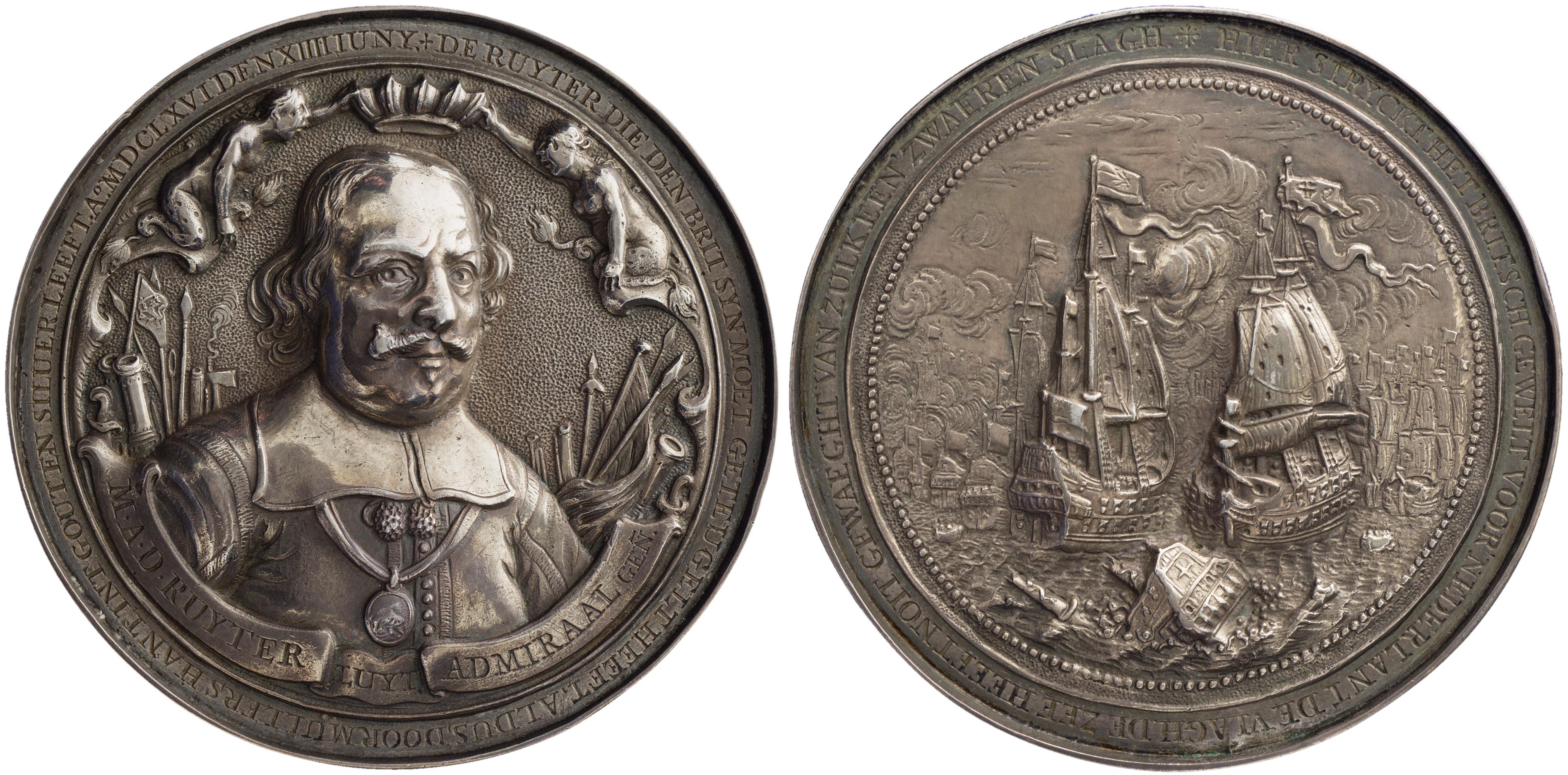 1666, slag bij Duinkerken penning ter ere van de Ruyter