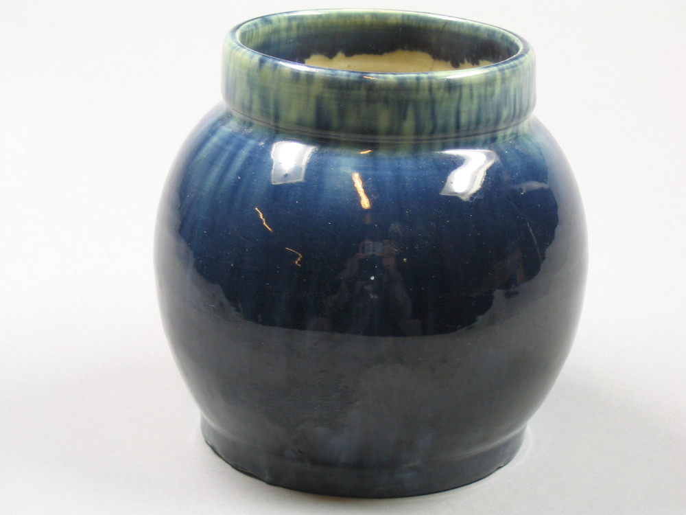 vaas van keramiek, diepdonkerblauw met lichtgroenige...