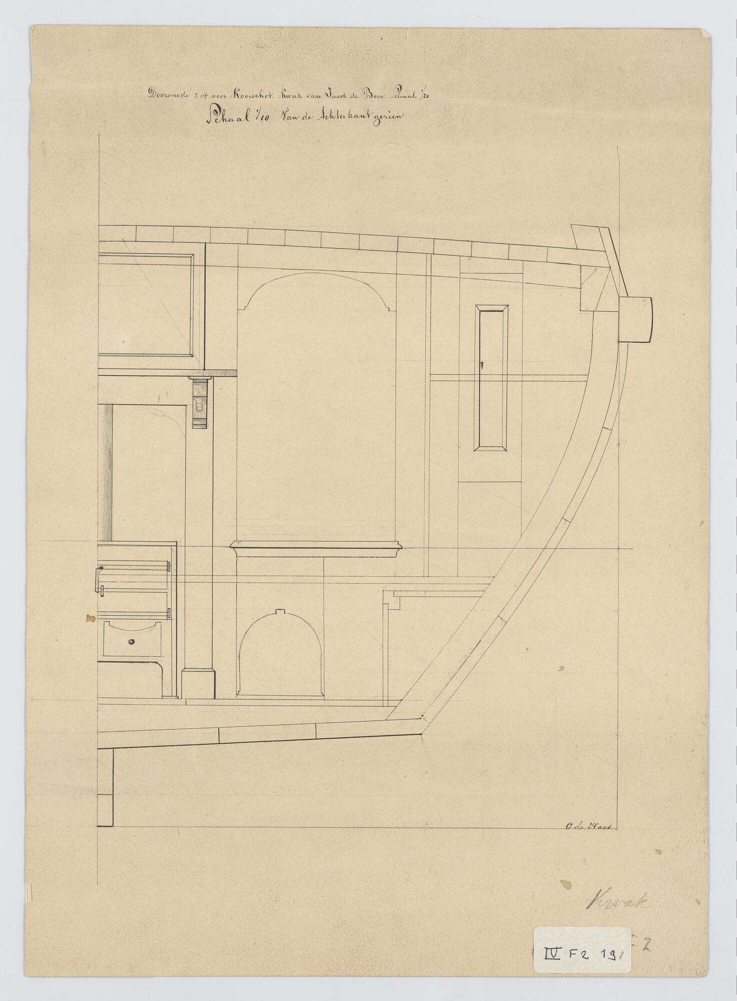 Verticale langsdoorsnede, voor- en achteraanzicht, w...
