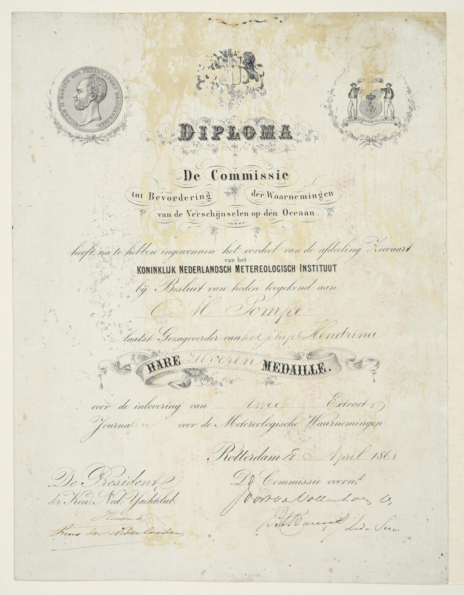 Diploma van de Commissie tot Bevordering der Waarnem...