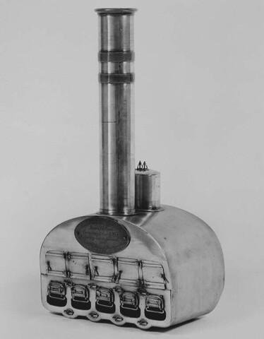 Verticale langsdoorsnede, boven-, zij- en vooraanzic...