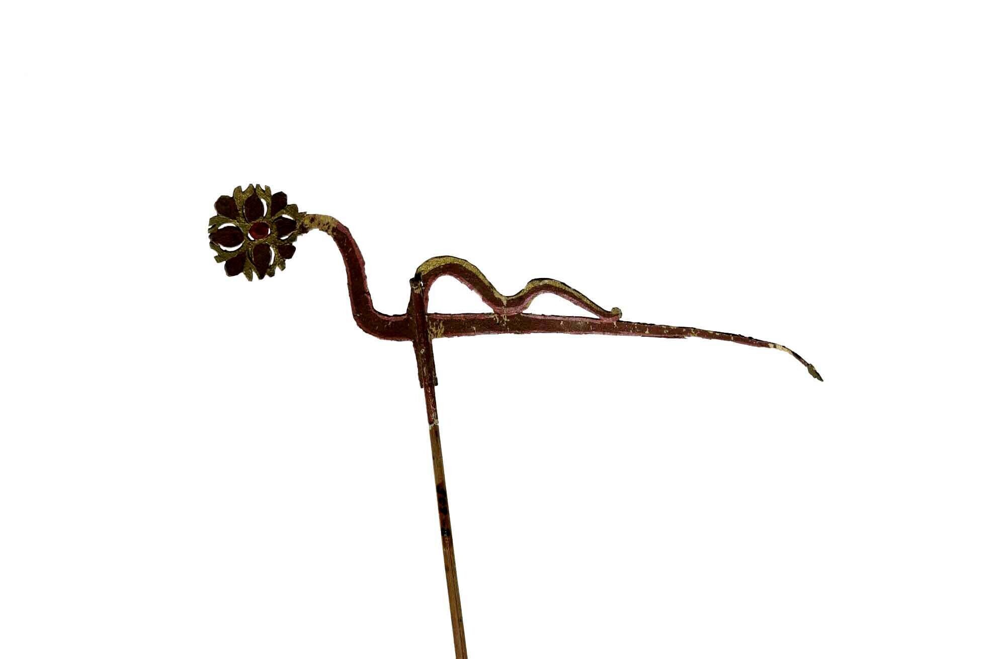 Op zijde gebatikte waaier met garnituur van lichtgee...