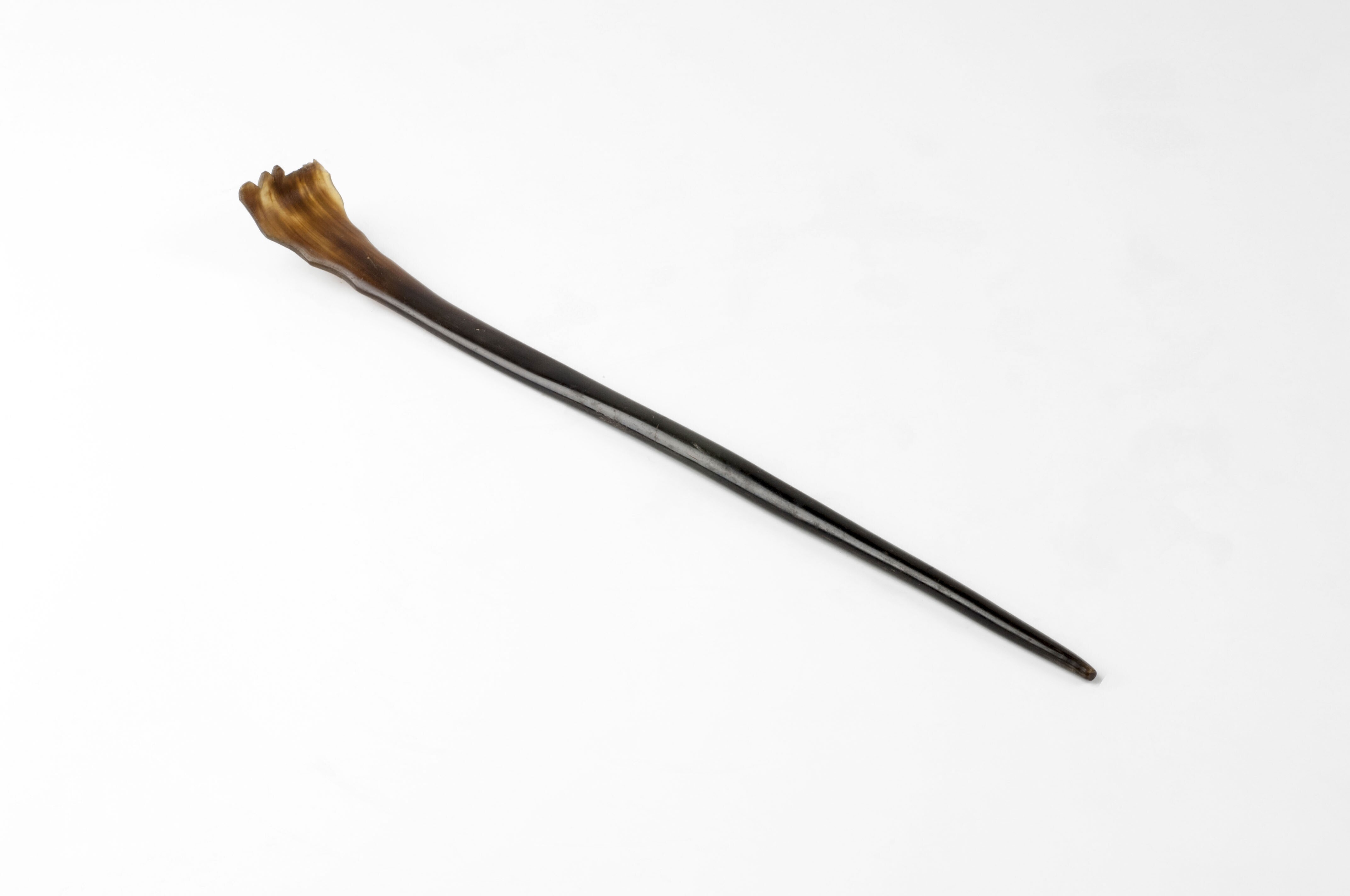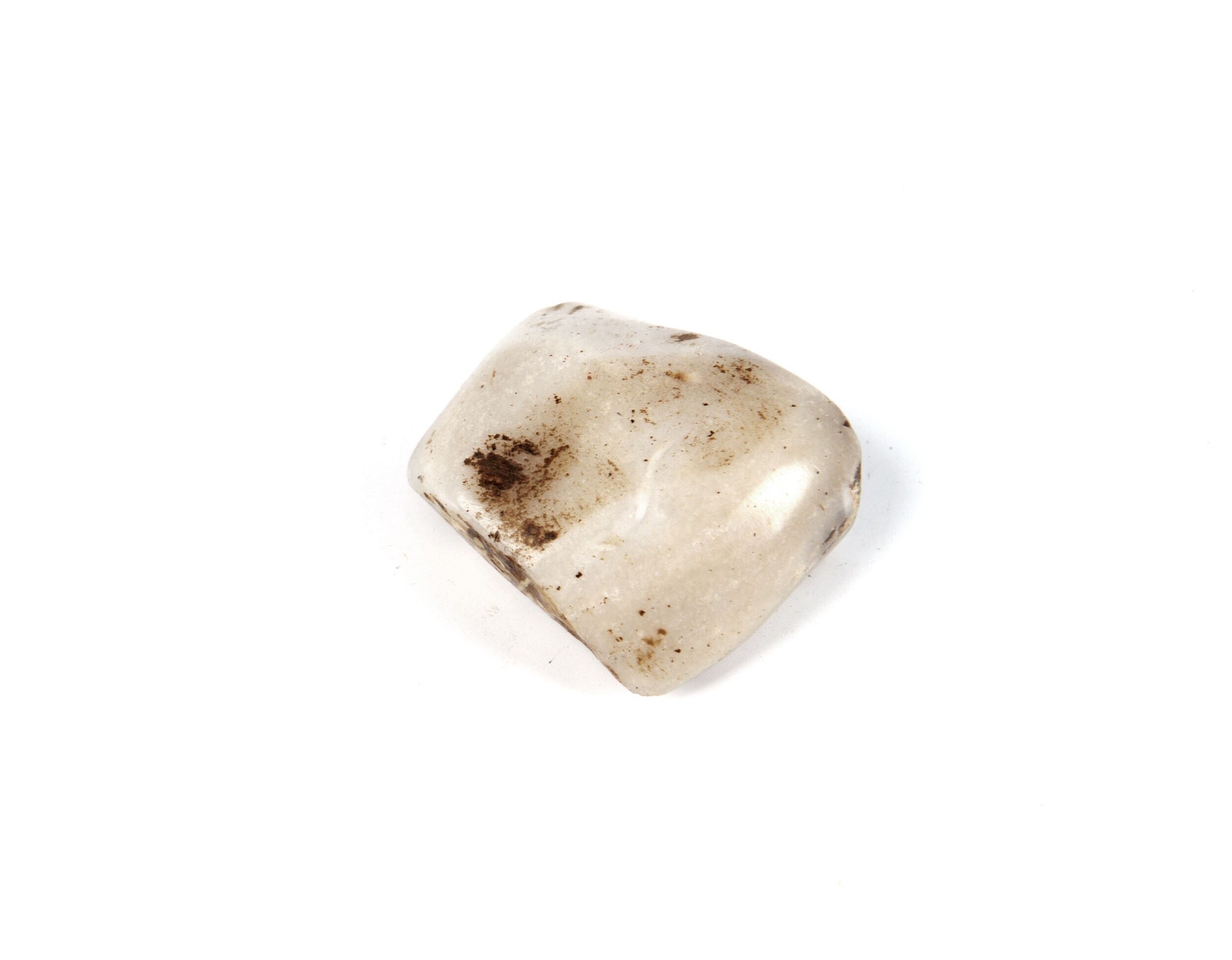 Tweedelig stempel in wayangvorm van blauwgrijze tufs...