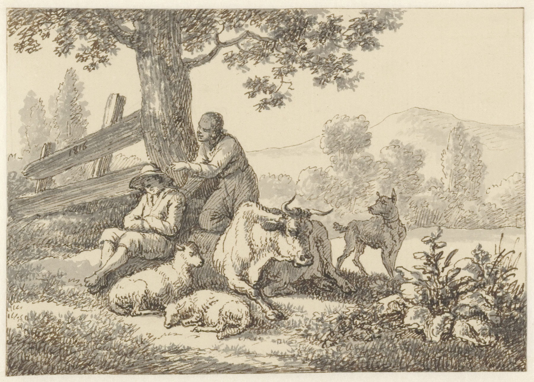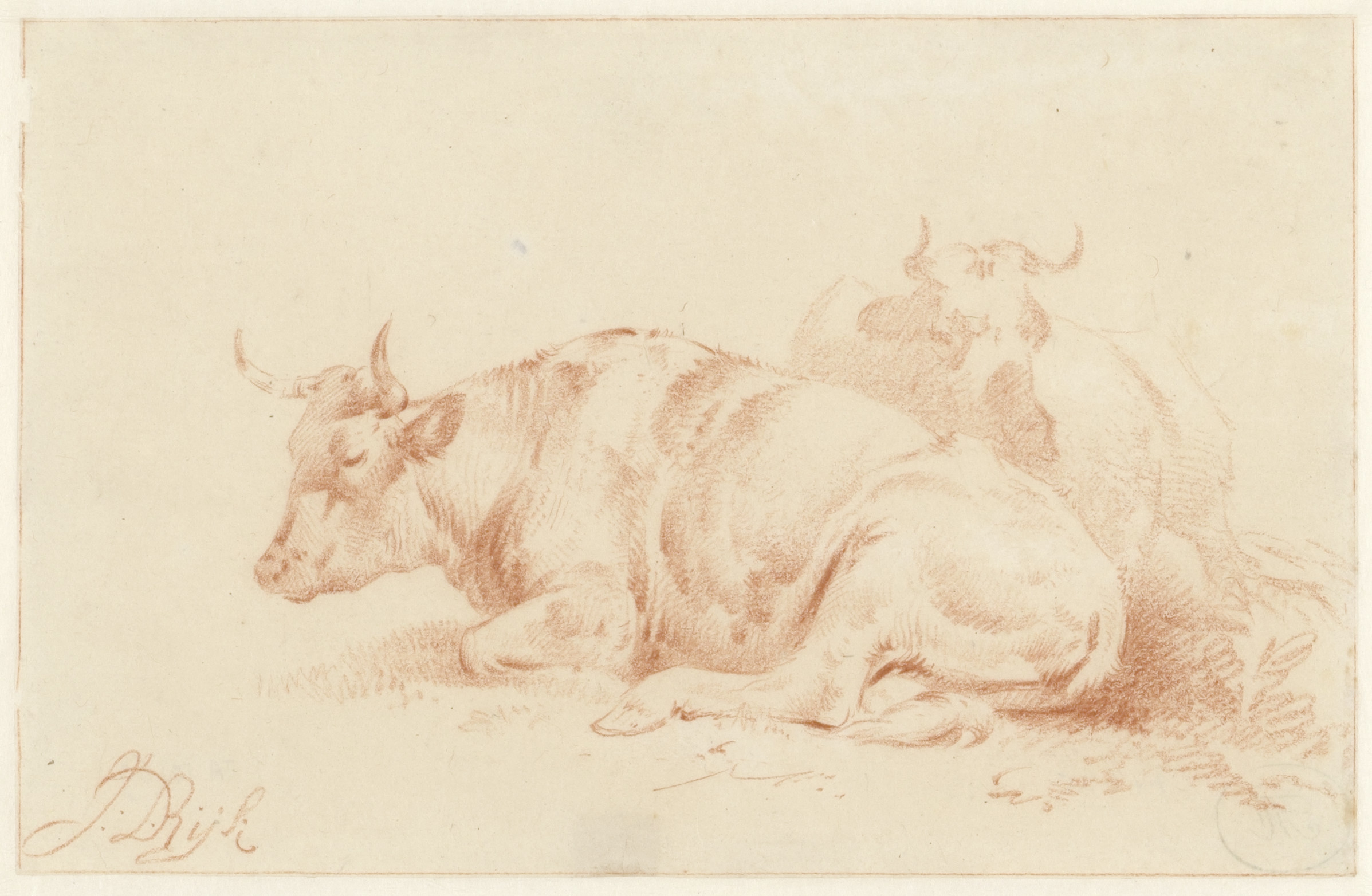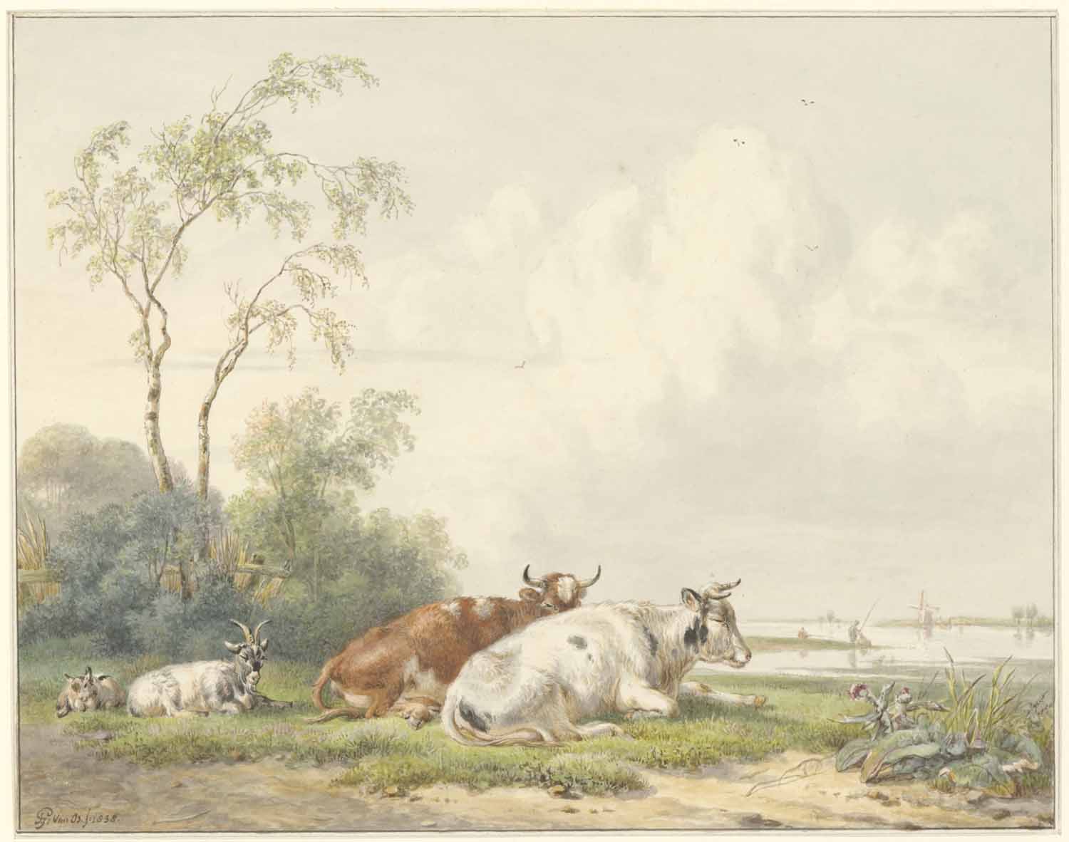 Een landschap met liggend rundvee