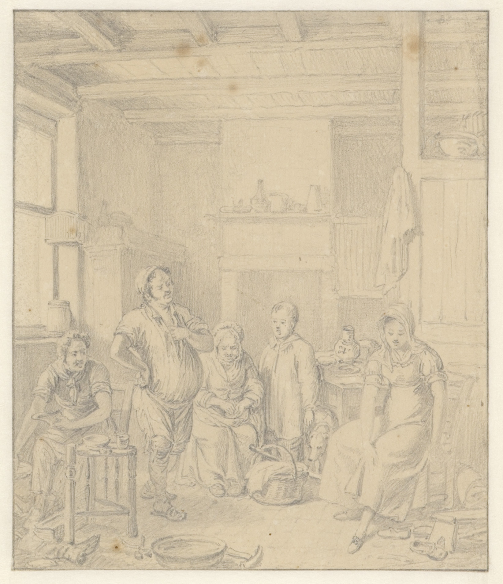 Een binnenhuis met vroolijke lieden
