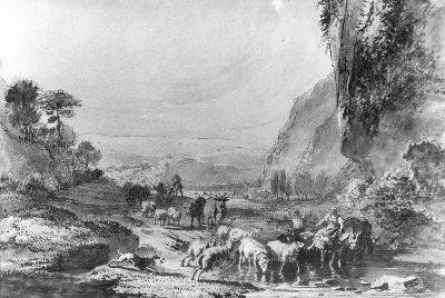 Rundvee bij eene bron