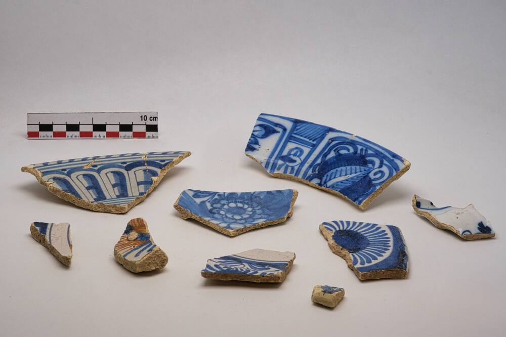 Fragmenten, aardewerk/majolica/delfts wit,