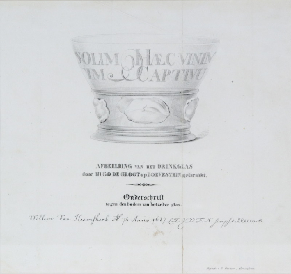 Drinkglas van Hugo de Groot, lithografie
