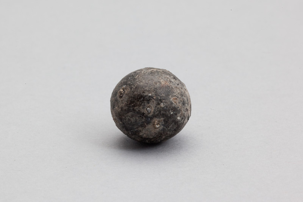 Musketkogel, lood, 16de/17de eeuw