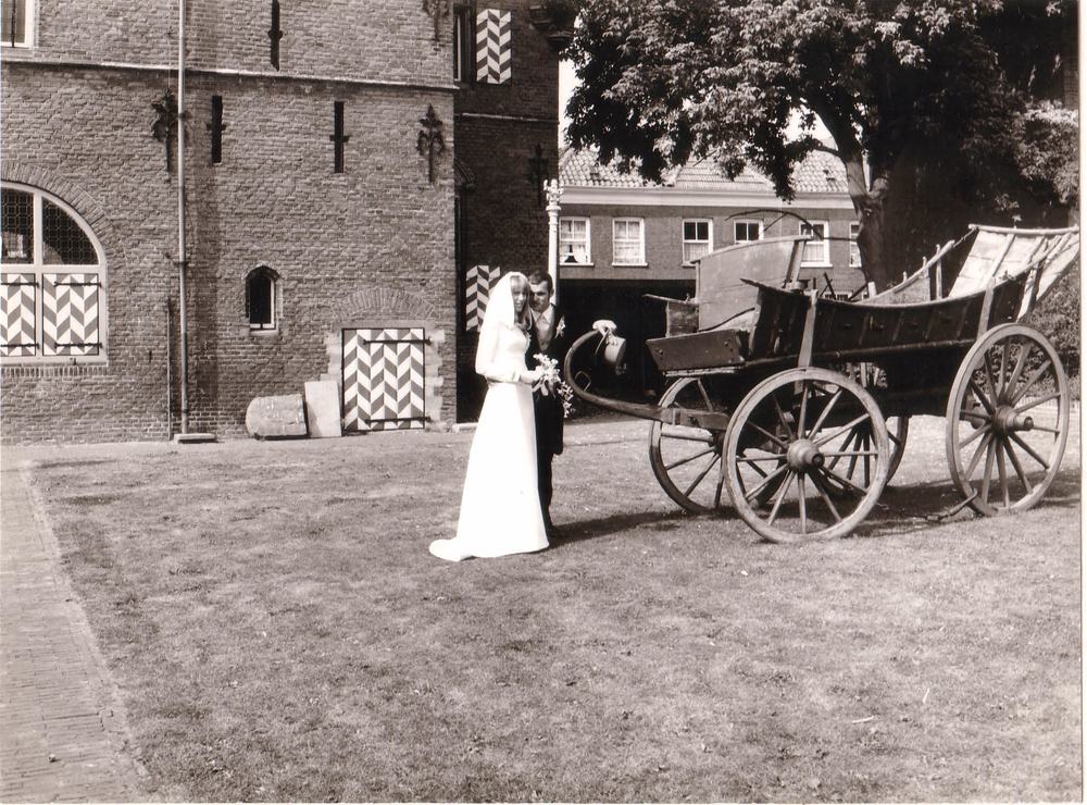 Bruidspaar in de tuin van het Maarten van Rossummuseum