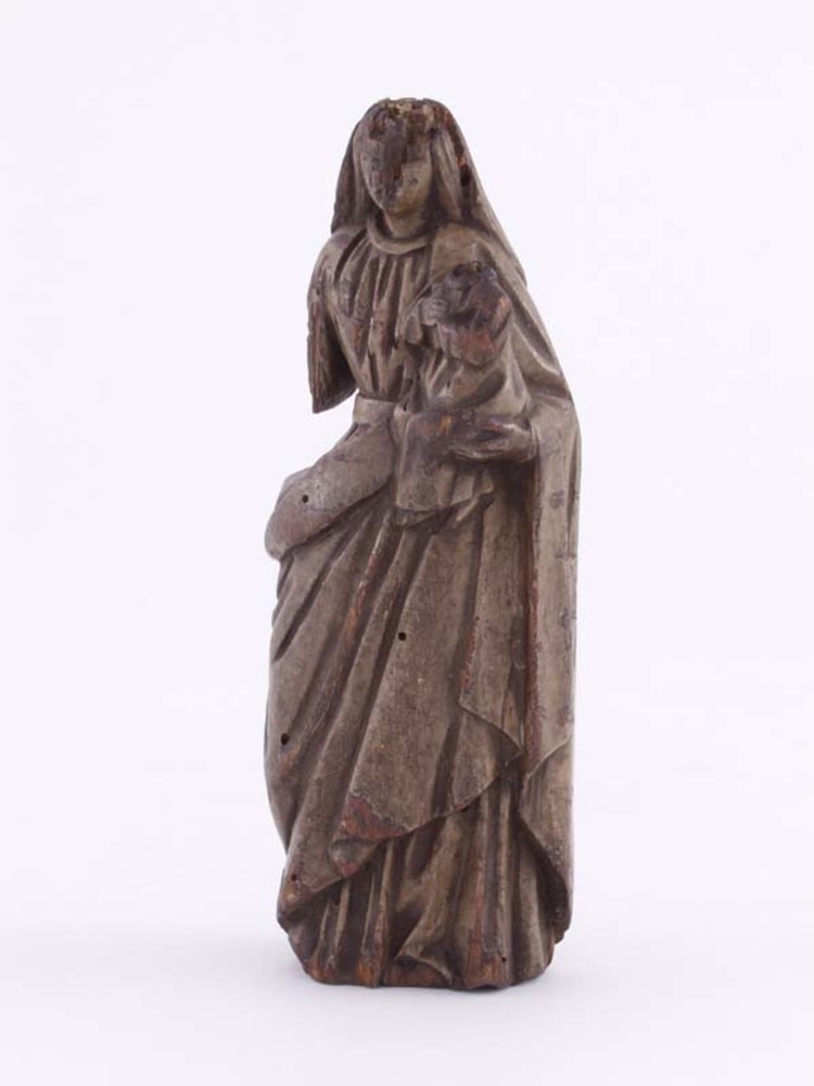 beeldje van hout met Maria en het kind Jezus in de l...