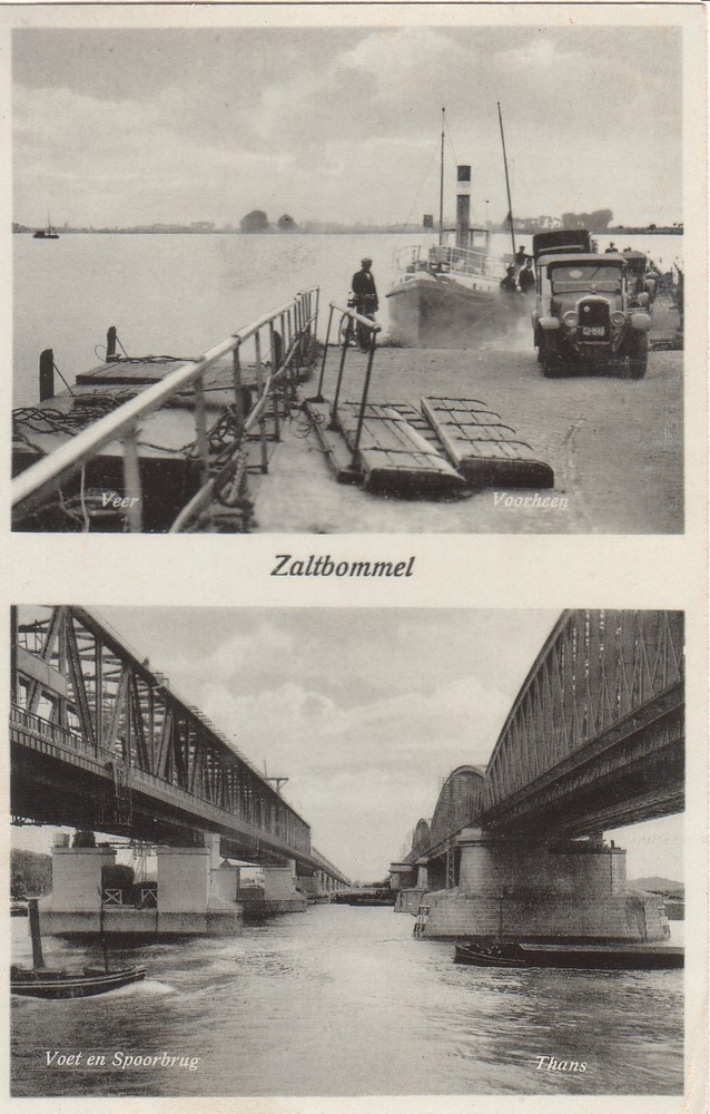 Zaltbommel veer voorheen, voet en spoorbrug thans