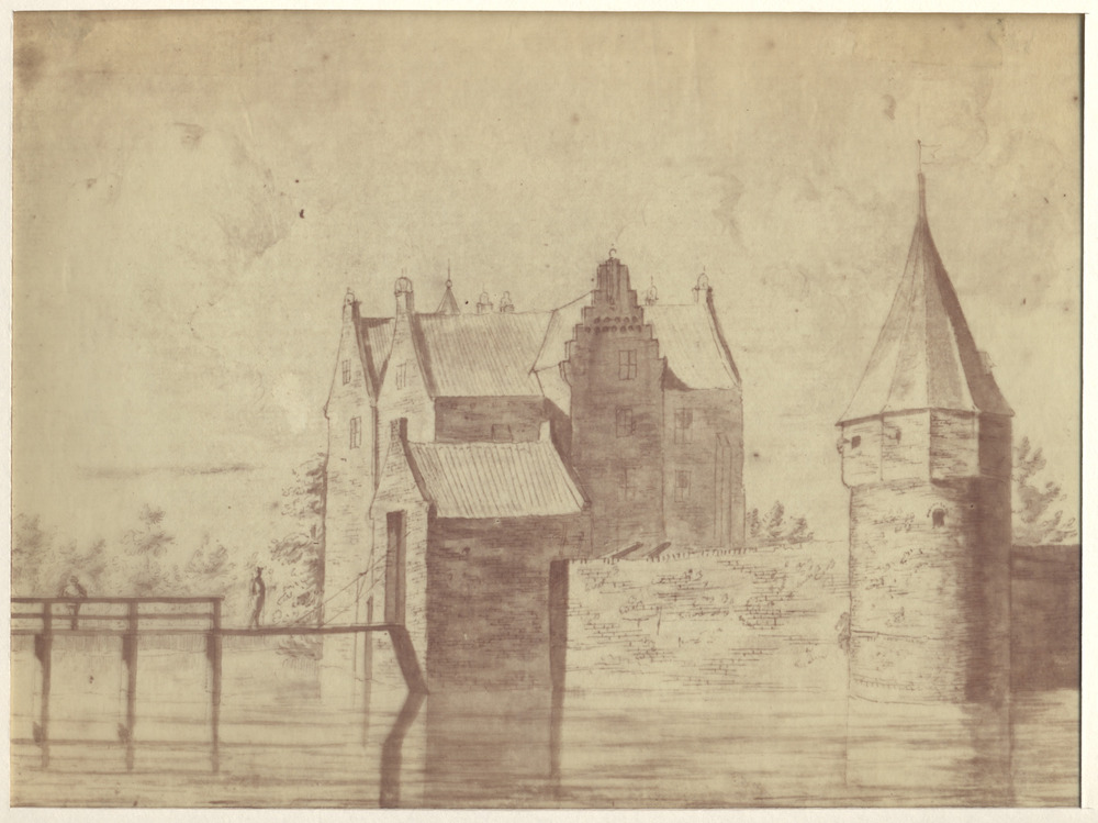 Gezicht op het Huis te Zuilichem met brug en slotgra...