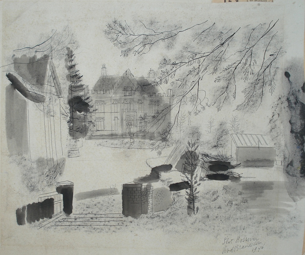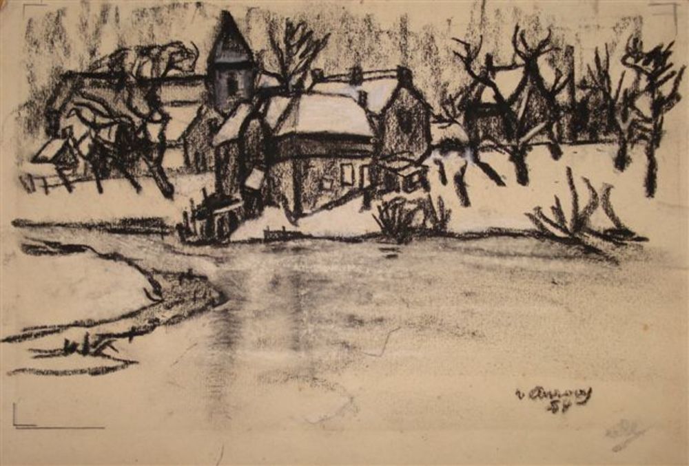 krijttekening dorpsgezicht, Jan van Anrooy 1954