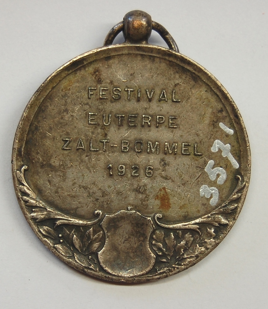 Verzilverd metalen medaille, Euterpe