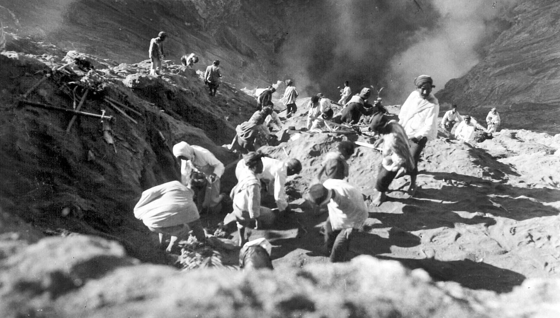 De deelnemers aan de pic-nic bij de Tangkuban-Prahu ...